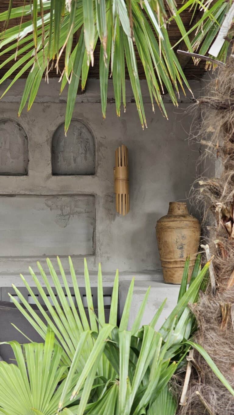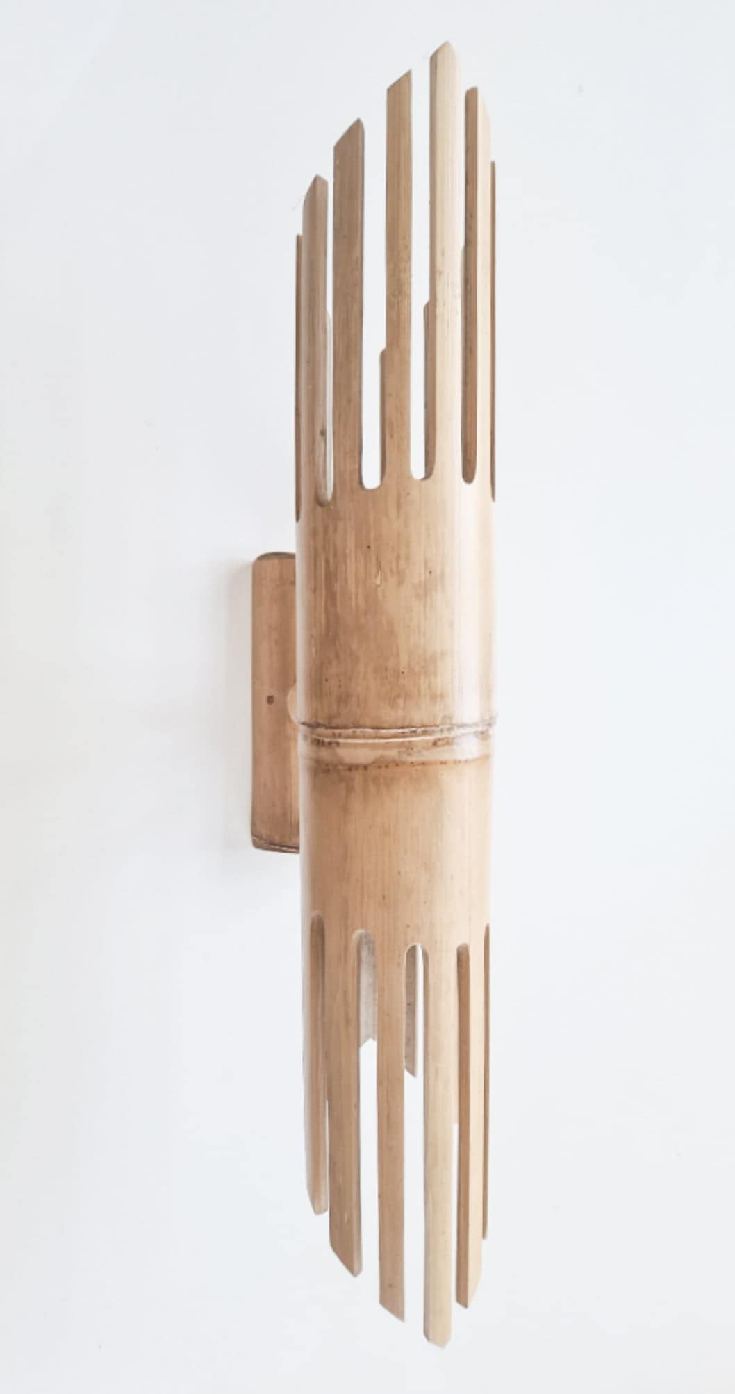 אהיל קיר בעבודת יד עשוי במבוק טבעי – פולט אור כלפי מעלה ומטה, מוסיף חמימות וטקסטורה לקיר ומדגיש אווירה טבעית בחלל.