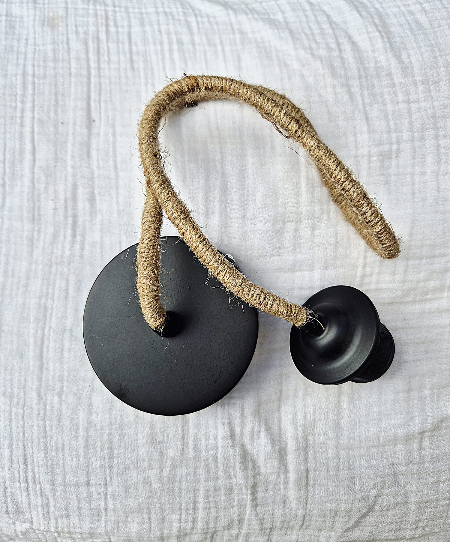 כבל תאורה עם חבל וצלחת עגולה שחורה.