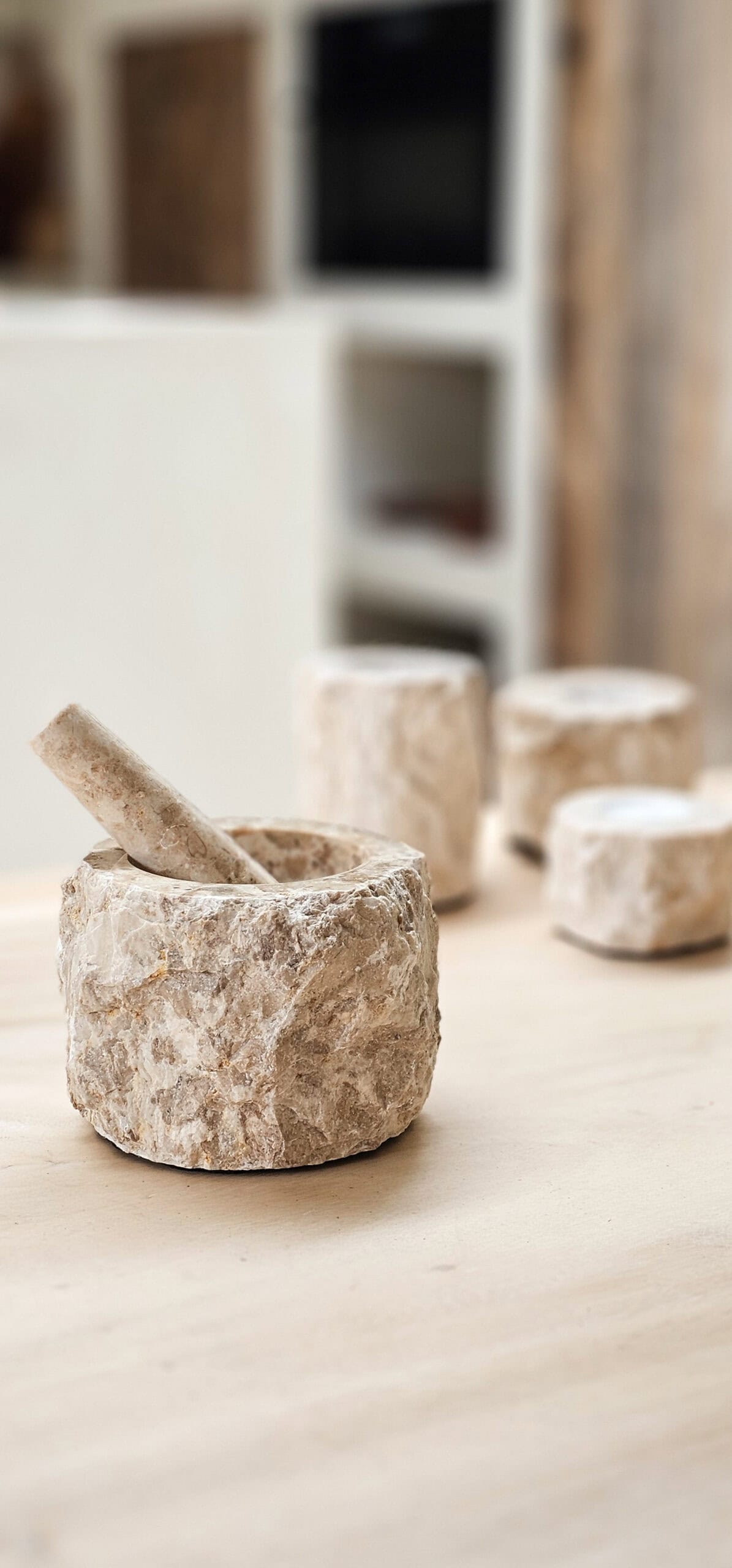 מכתש ועלי חזק מאבן שיש גס,
