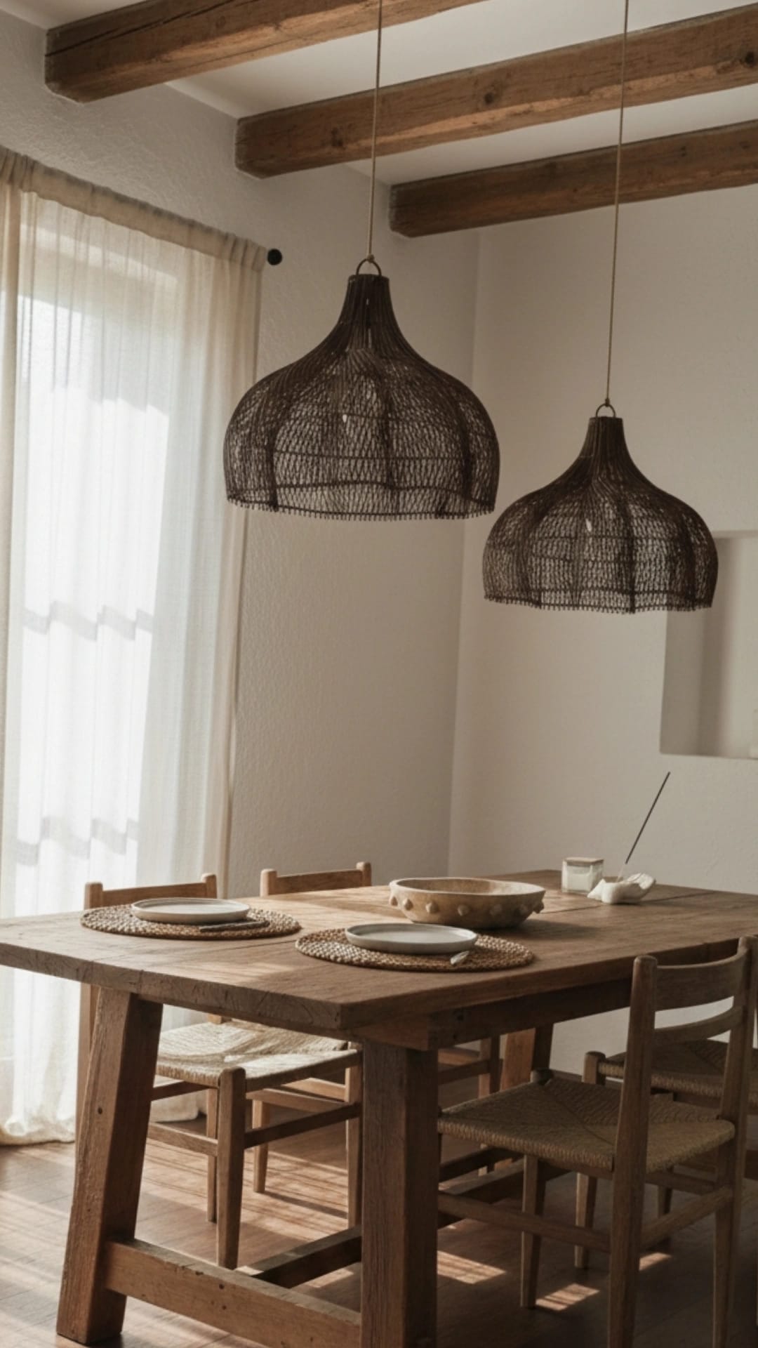מנורת ראטן עגולה גדולה בסגנון בוהו טבעי.