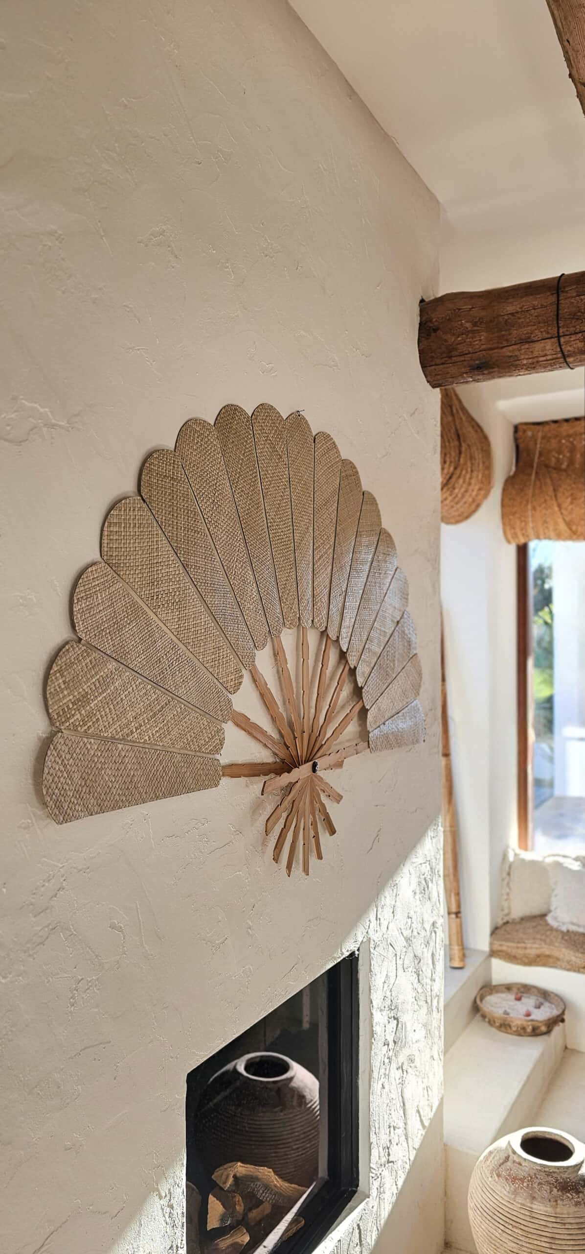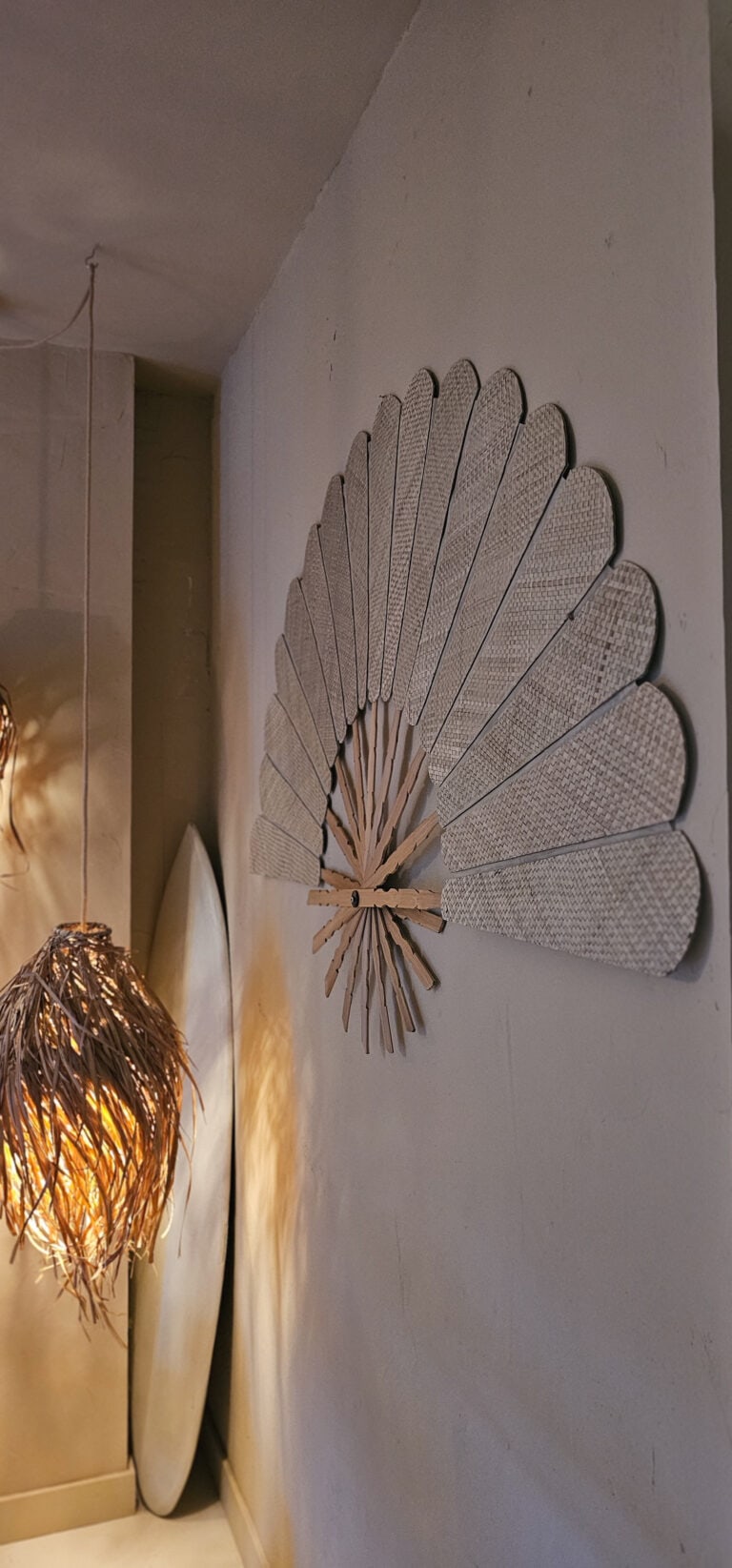 מניפת קיר גדולה עשויה במבוק טבעי בעבודת יד,